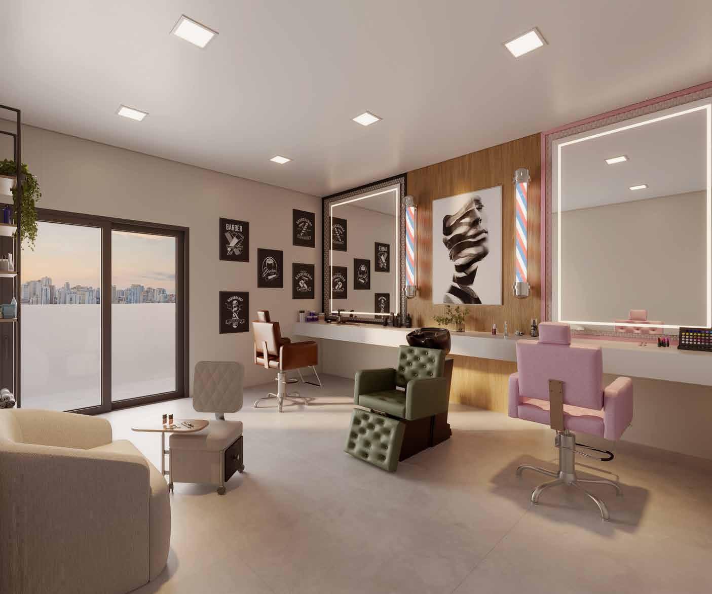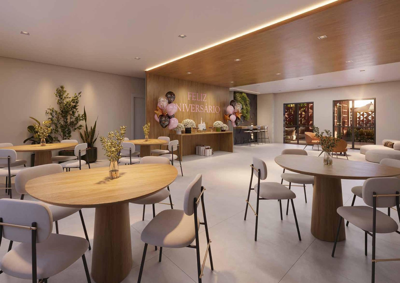 Piscinas adulto e infantil • Prainha e solarium • Quadra recreativa • Playground • Casa de Campo / Spa • Praça da Família • Pet Care • Garden Lounge • Brinquedoteca • Salão de Jogos • Coworking • Sala Gamer • Salão de Festas & Coliving • Mini Market • Lavanderia compartilhada • Espaço Beleza