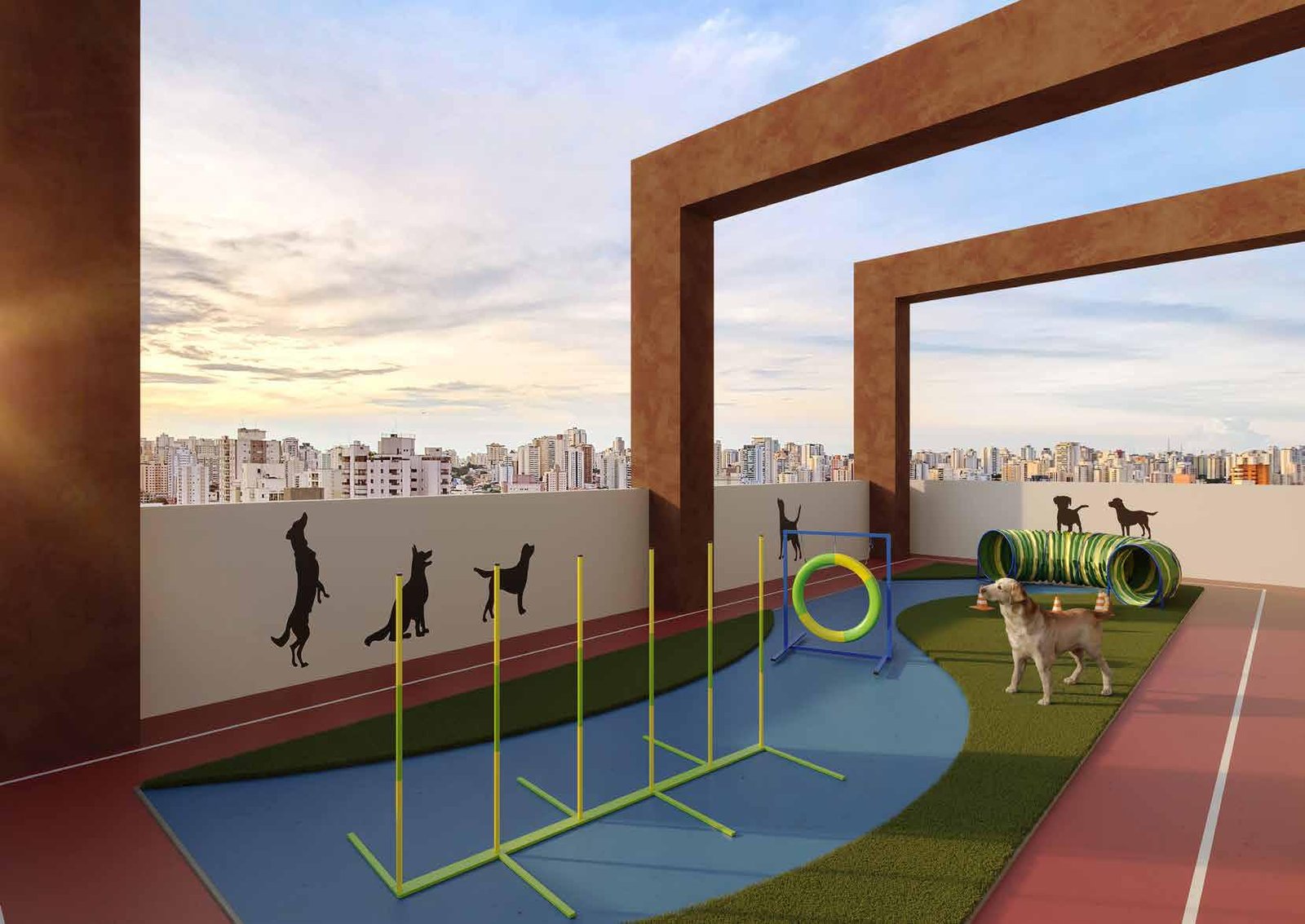 Sky Pool • Cine Sky • Gazebo Gourmet • Sky Pet • Sports Bar • Lounge • Academia completa • Spa • Escada Fitness • Pista de Caminhada